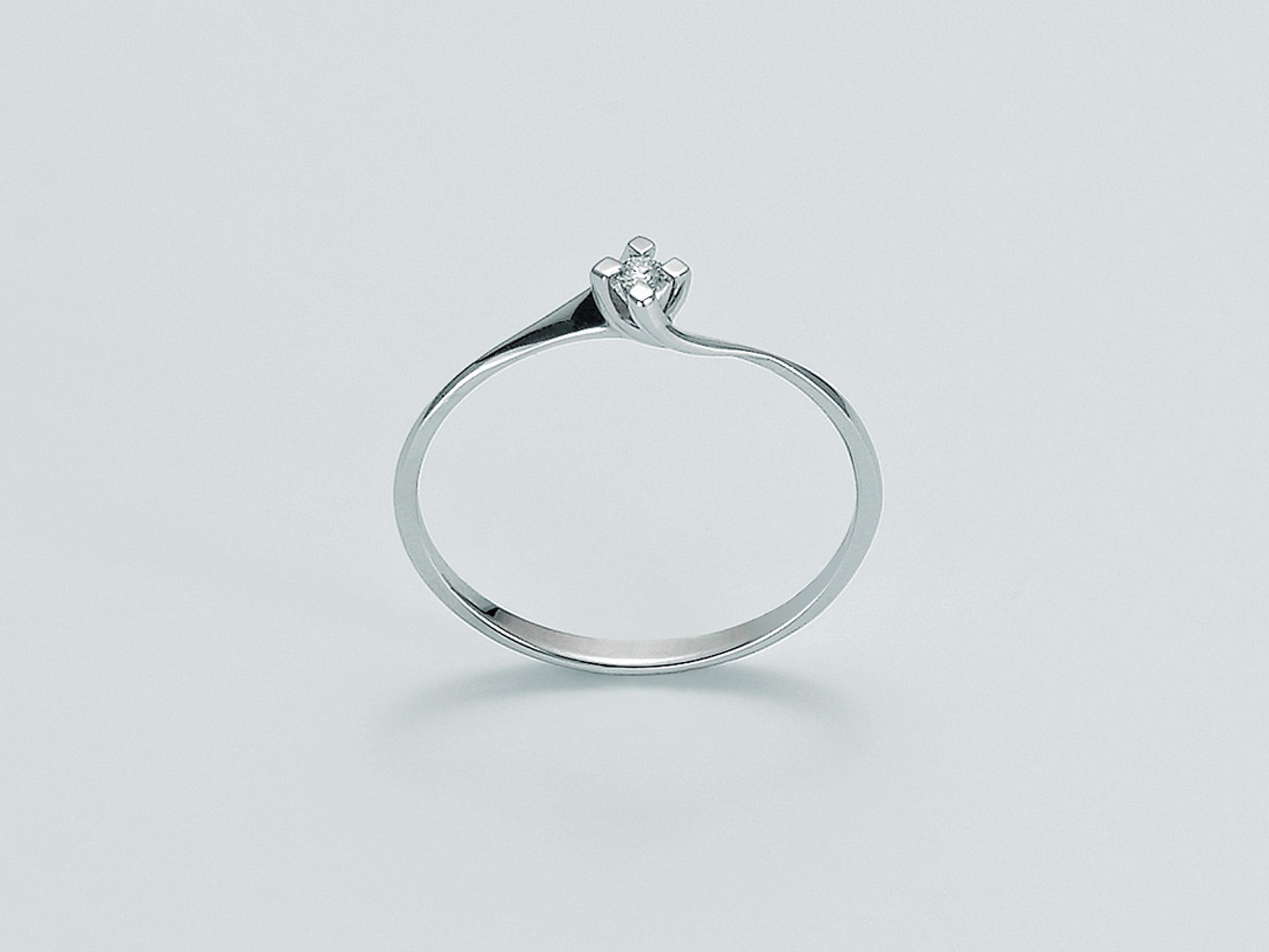 ANELLO SOLITARIO ORO BIANCO 18KT CON DIAMANTE TAGLIO BRILLANTE DI KT.0,09 COLORE G