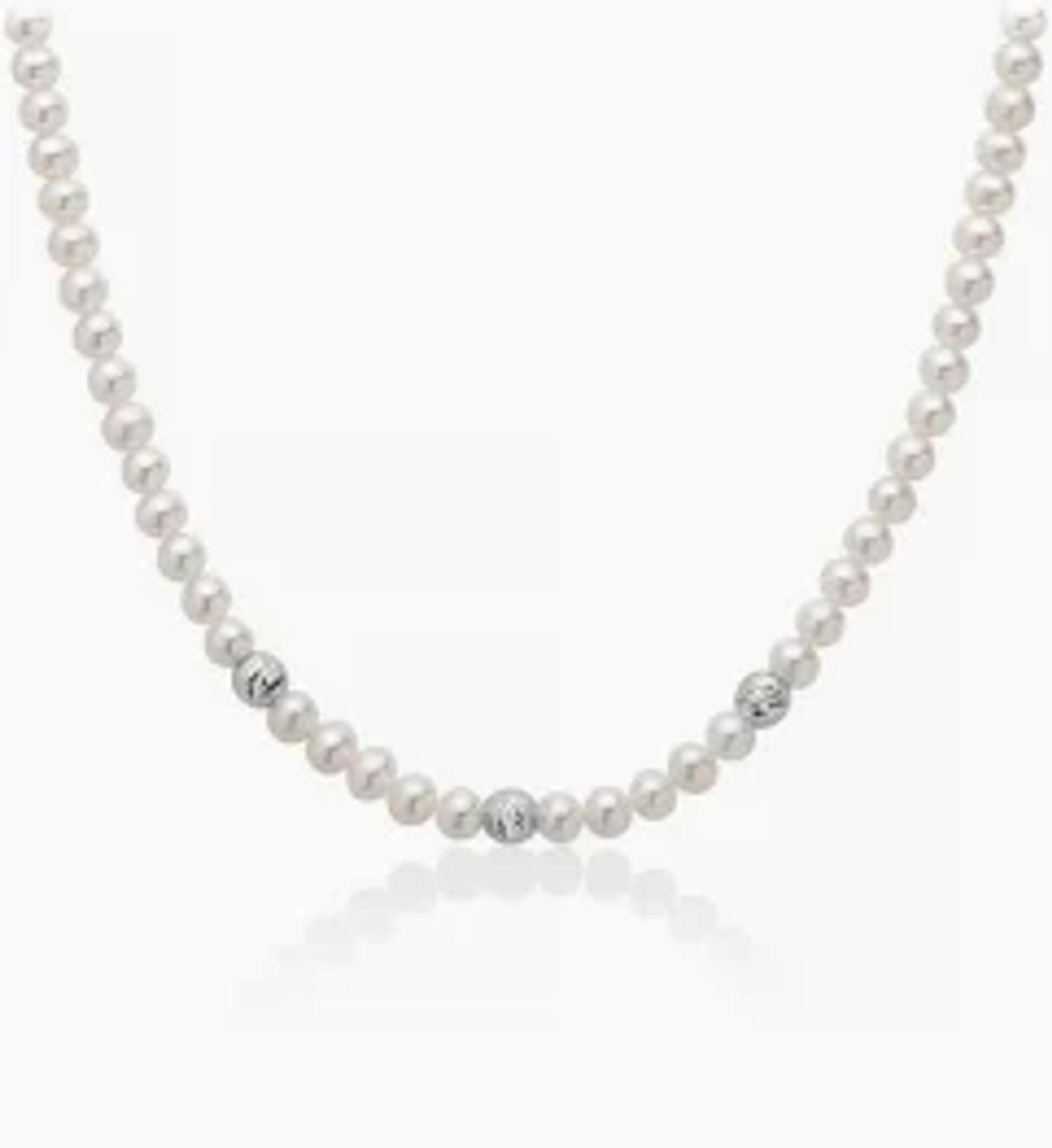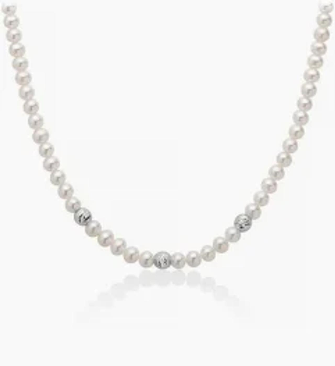 Collana Perle con fermaglio e palline diamantate in oro bianco 9kt