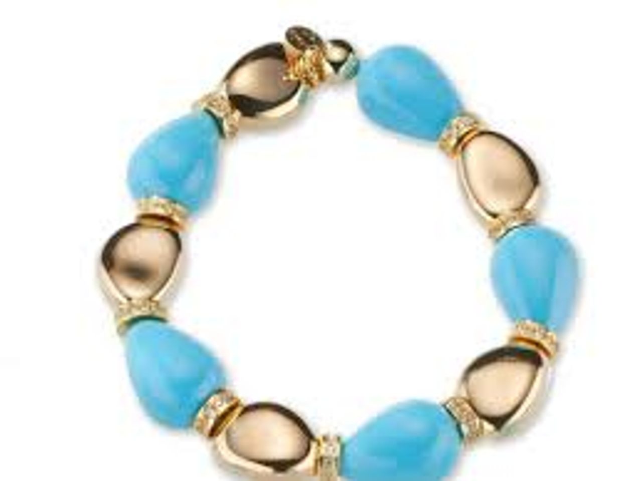Bracciale Elastico con Zirconi, Ottone lucido e Pasta di Turchese